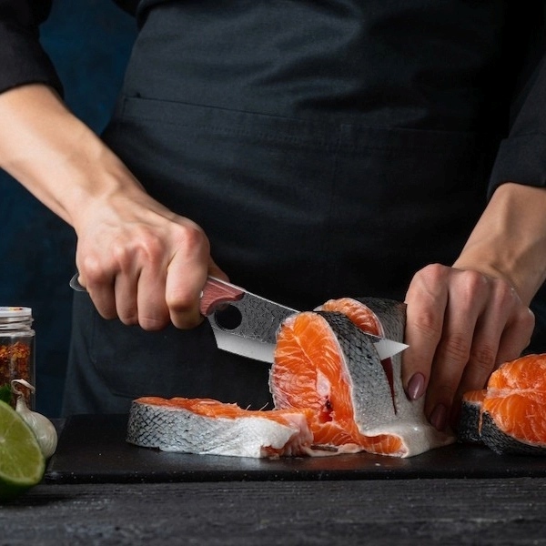 Bilo da ste domaći kuhar ili profesionalac, HISUI poboljšava svaku pripremu obroka. Od nasjeckanja povrća do filetiranja mesa, njegova ergonomska konstrukcija i uravnotežena težina omogućuju glatko, lagano rezanje koje svaki zadatak pretvara u umjetnost.